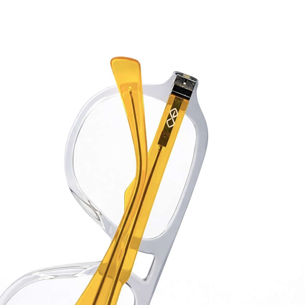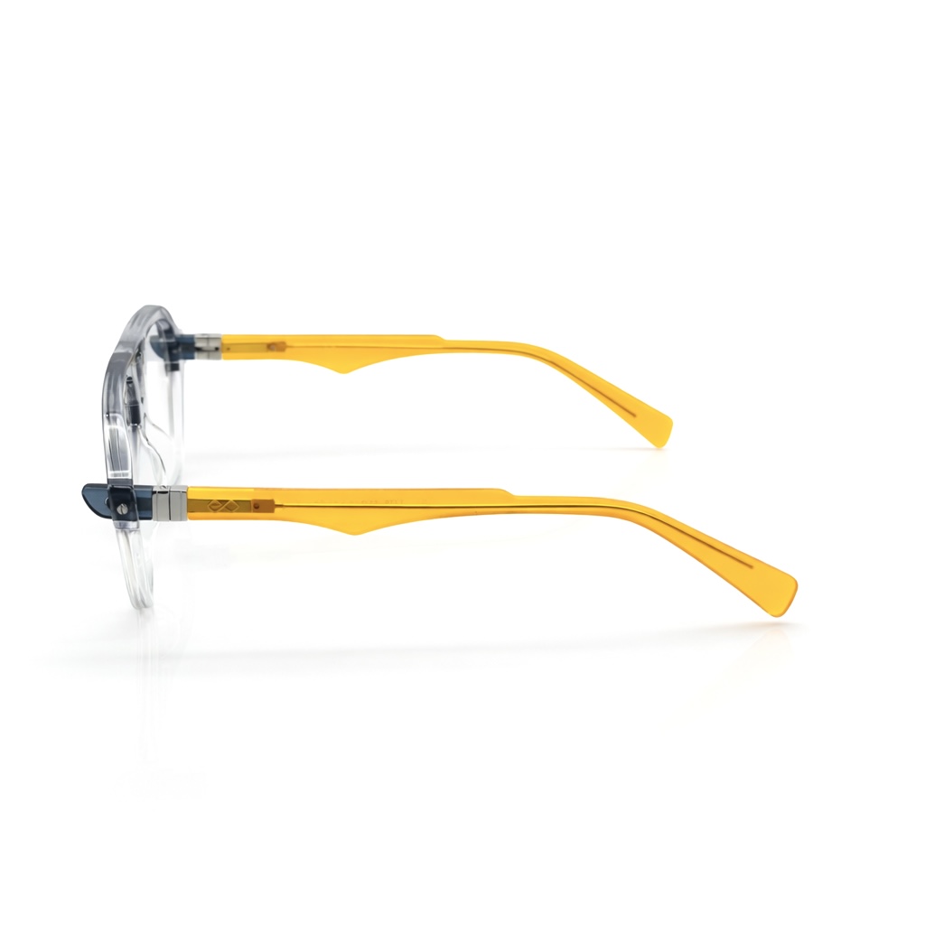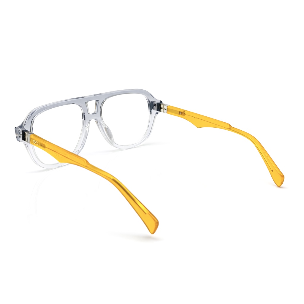 The Eyedoo Signature Frame is a striking blend of modern design and bold character. Featuring a sleek transparent frame with a distinctive double-bridge structure, this design delivers a contemporary look that stands out effortlessly. The clear front creates a clean and minimal aesthetic, while the vibrant orange temples add an energetic pop of color.