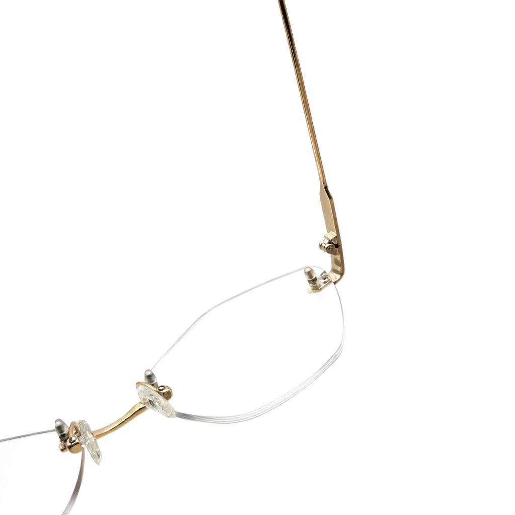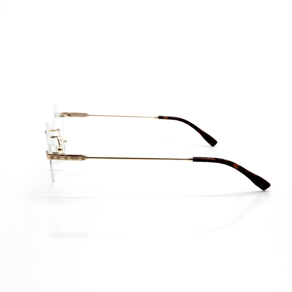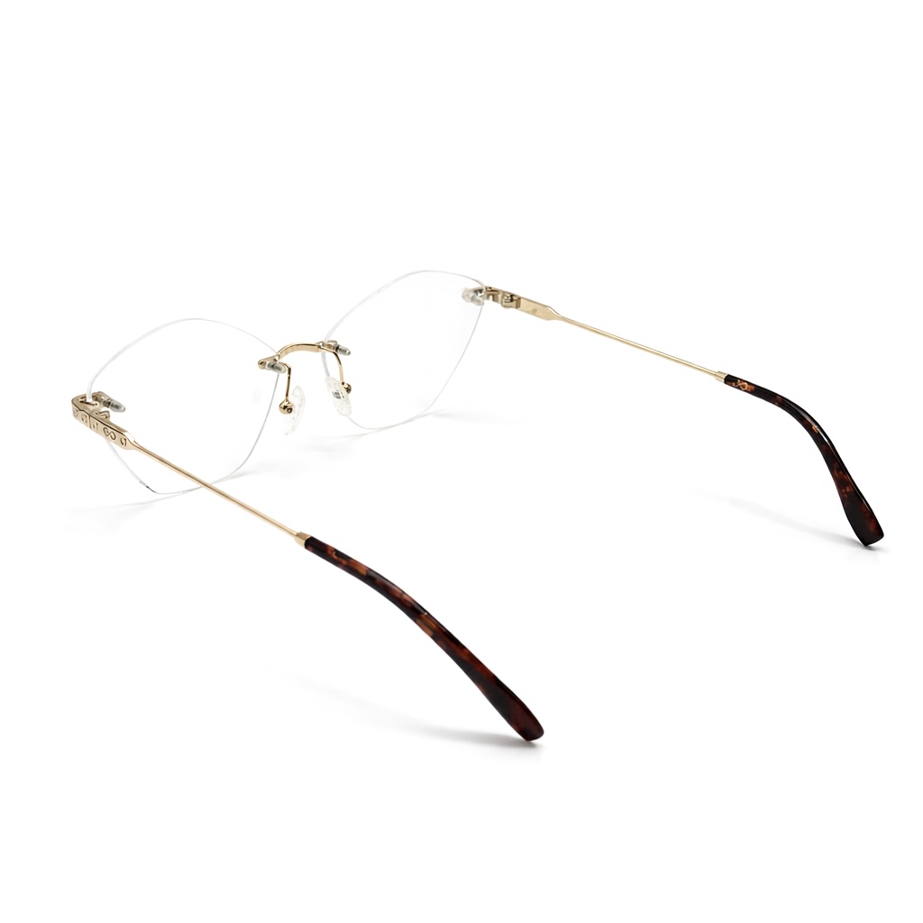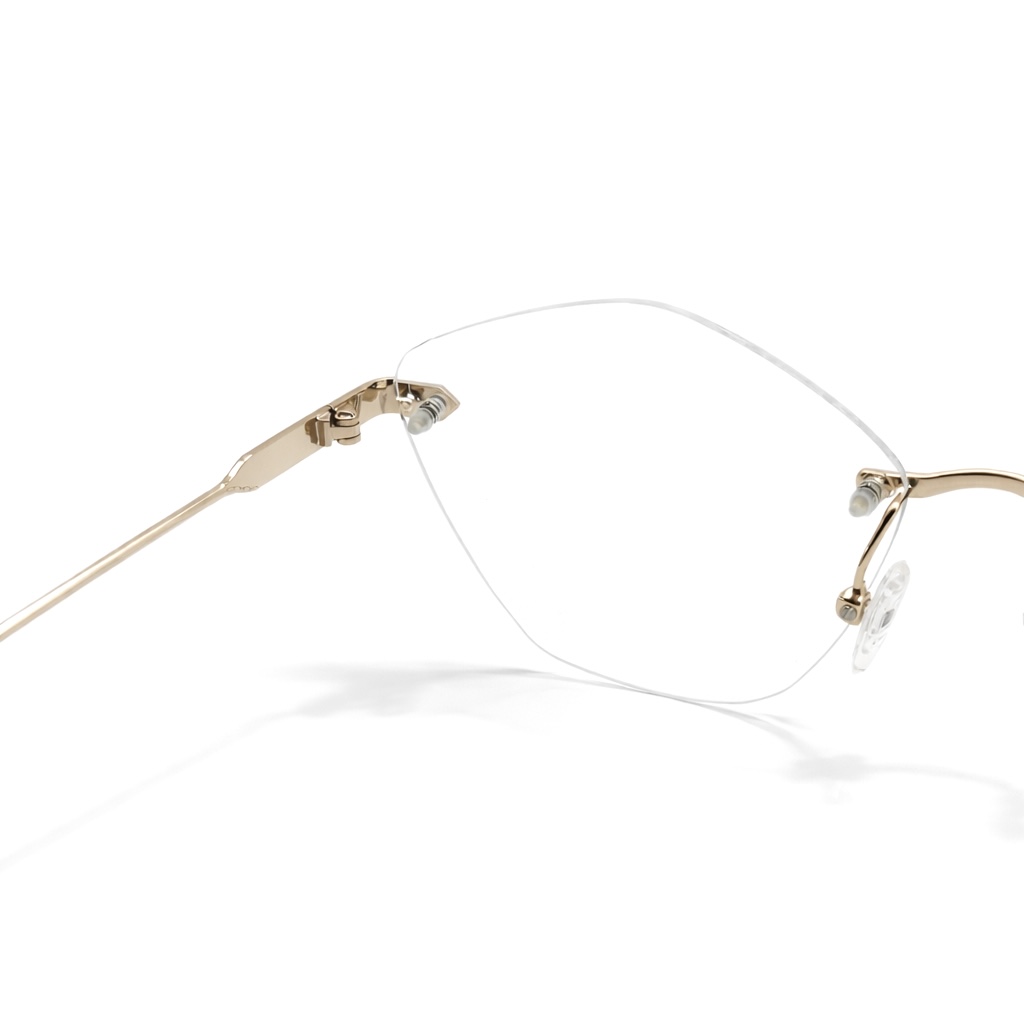 The premium gold-tone metal bridge and temples add a touch of luxury, while the clean rimless lenses create a sleek and minimal aesthetic. Subtle detailing on the hinges and the carefully crafted structure ensure durability along with exceptional comfort for all-day wear.