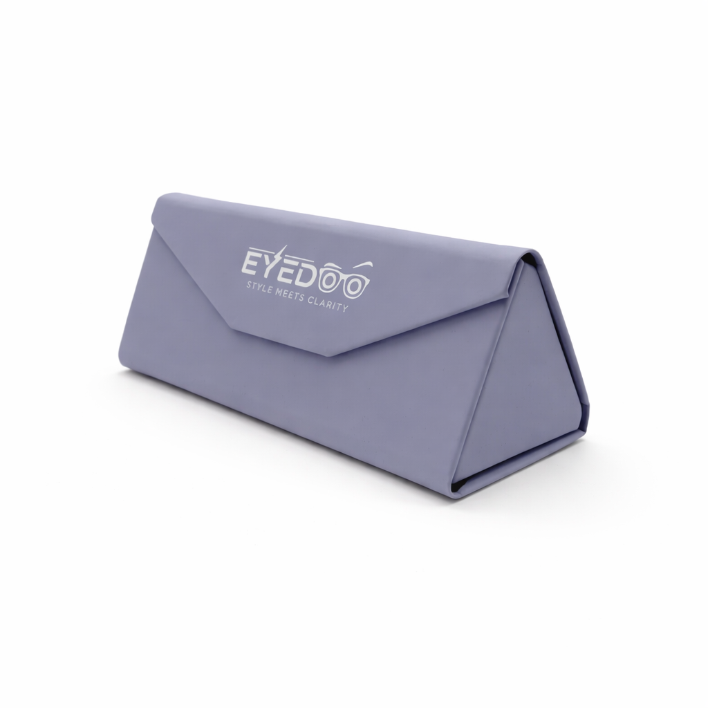 Finished in a soft lavender, the case delivers a clean and contemporary look that complements your eyewear accessories. The exterior features a smooth, premium leather-like texture with the Eyedoo logo and tagline “Style Meets Clarity” elegantly printed on the front.