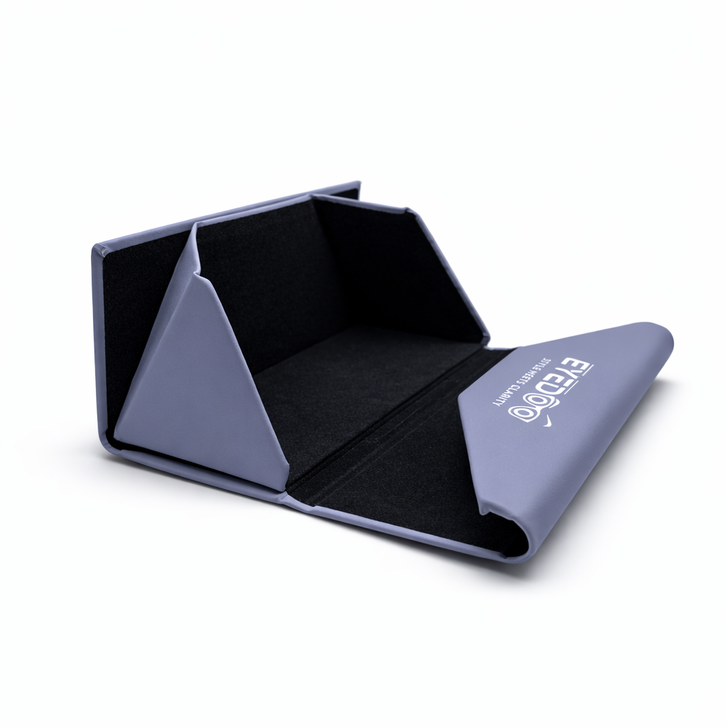 Its foldable design allows the case to collapse flat when not in use, making it easy to store in bags, backpacks, or pockets. When opened, the triangular structure forms a strong protective vault that helps shield your glasses from pressure, scratches, and dust.