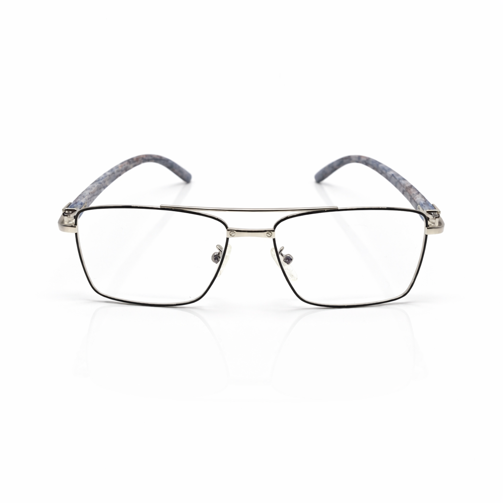 The deep black base blended with rich amber highlights creates a striking contrast, giving the frame a premium and sophisticated appeal. Its sharp rectangular silhouette adds definition to your face, making it an ideal choice for a confident and polished appearance.