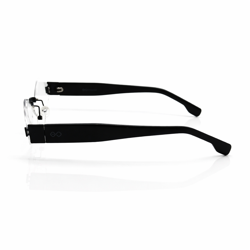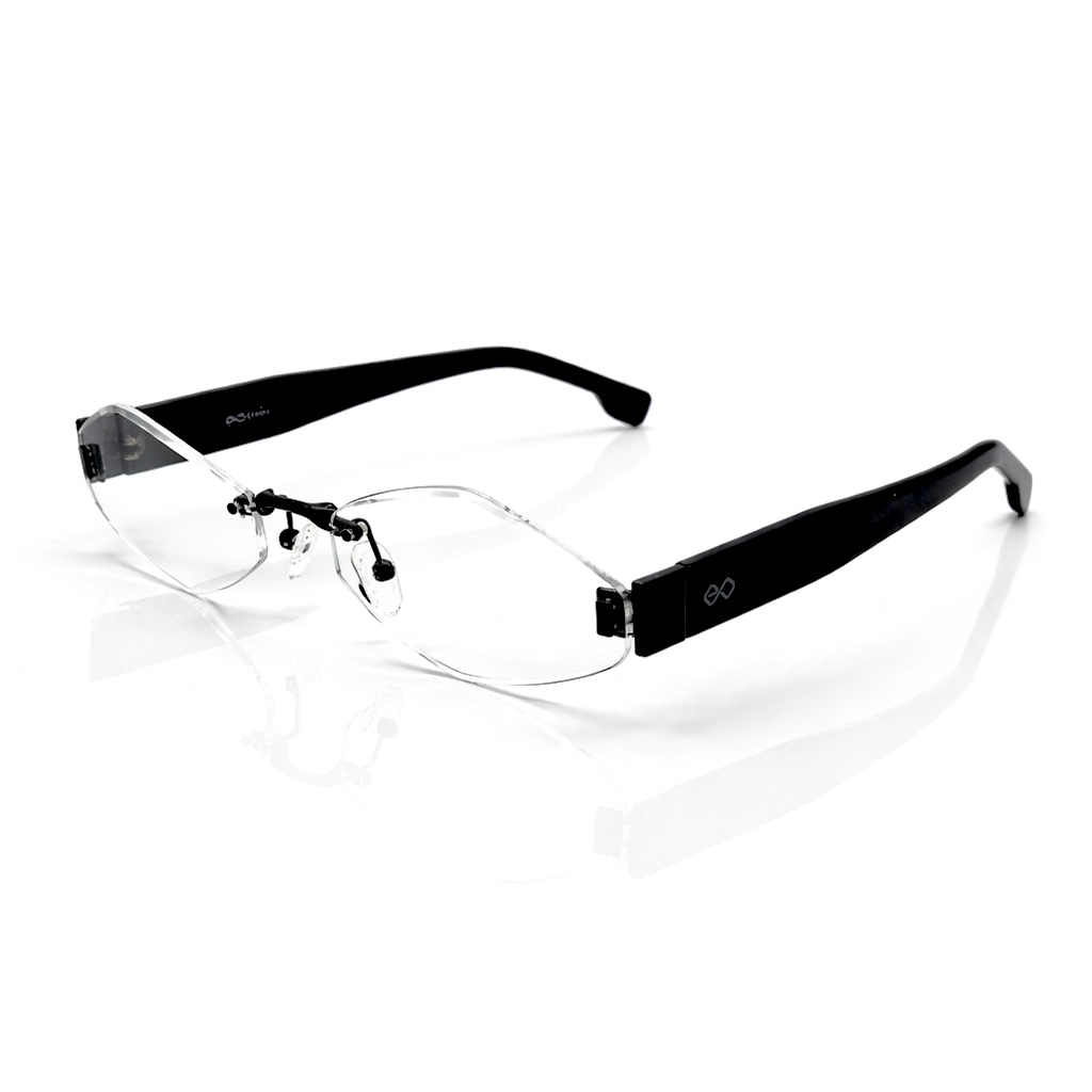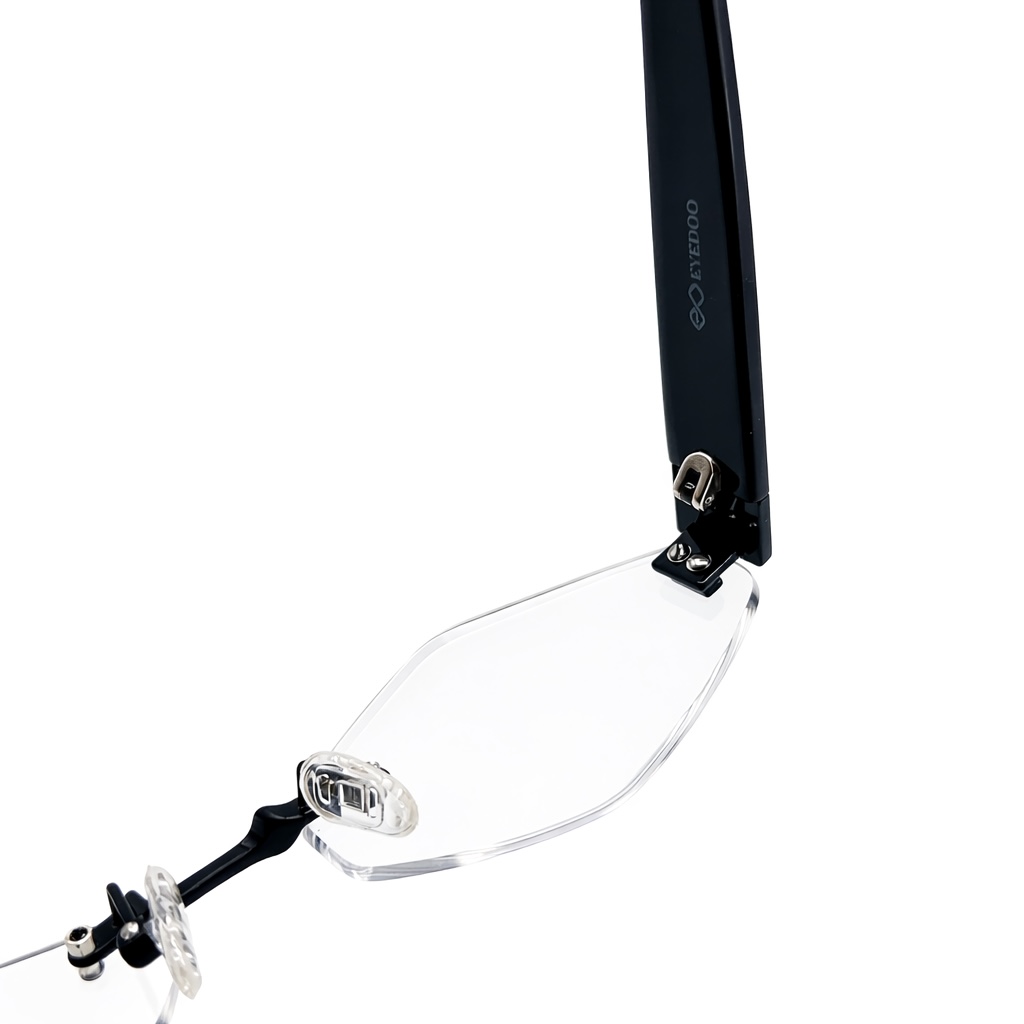 The EYEDOO Signature frame showcases a bold take on minimalism with its rimless geometric lens design and sleek modern structure. The sharp lens shape creates a distinctive and contemporary look, making it an excellent choice for those who appreciate unique and stylish eyewear.