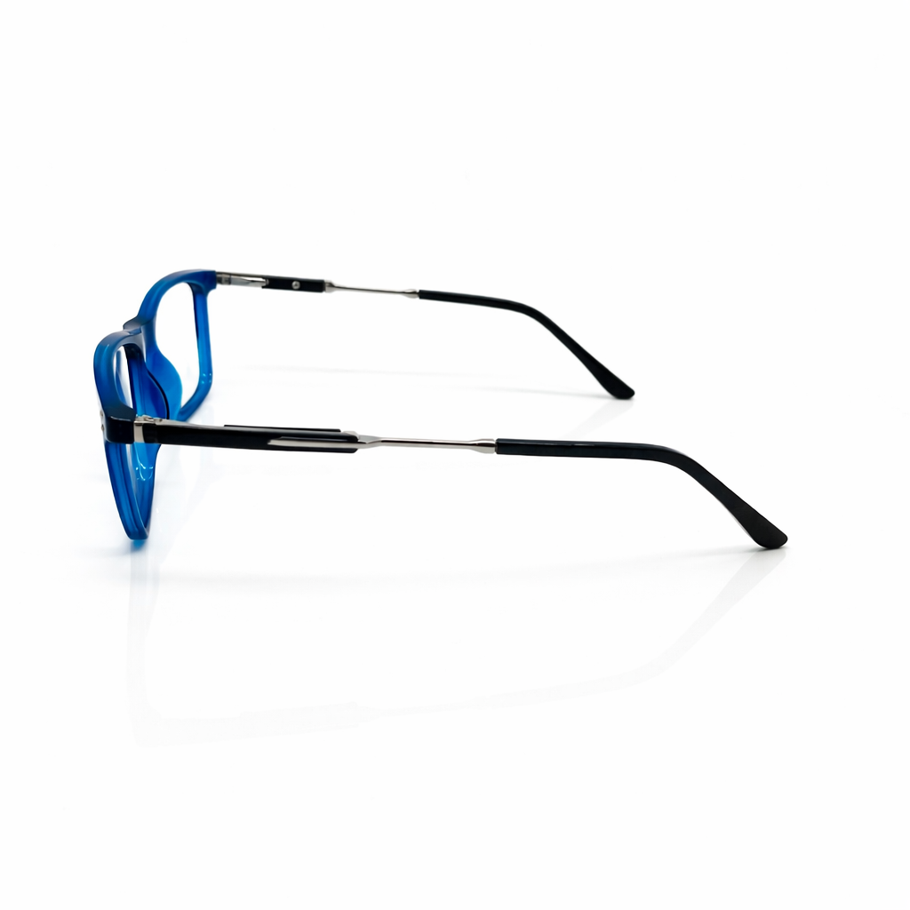Infuse your daily look with a splash of intelligent color with the Cobalt Current. These frames feature a sleek, rectangular silhouette that provides a structured, high-definition look for any face shape. The translucent blue finish catches the light, shifting from a deep navy to a vibrant azure depending on your environment.