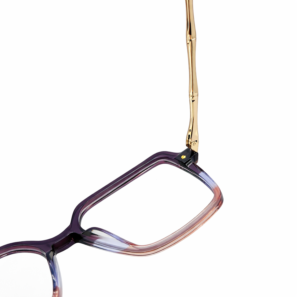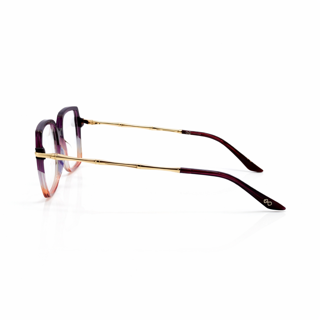 The Eyedoo Signature Frame blends contemporary elegance with artistic color detailing, creating a look that stands out while remaining refined. Designed with a bold square silhouette, this frame features a smooth gradient finish that transitions from deep violet to soft blush tones, giving it a sophisticated and fashionable character.