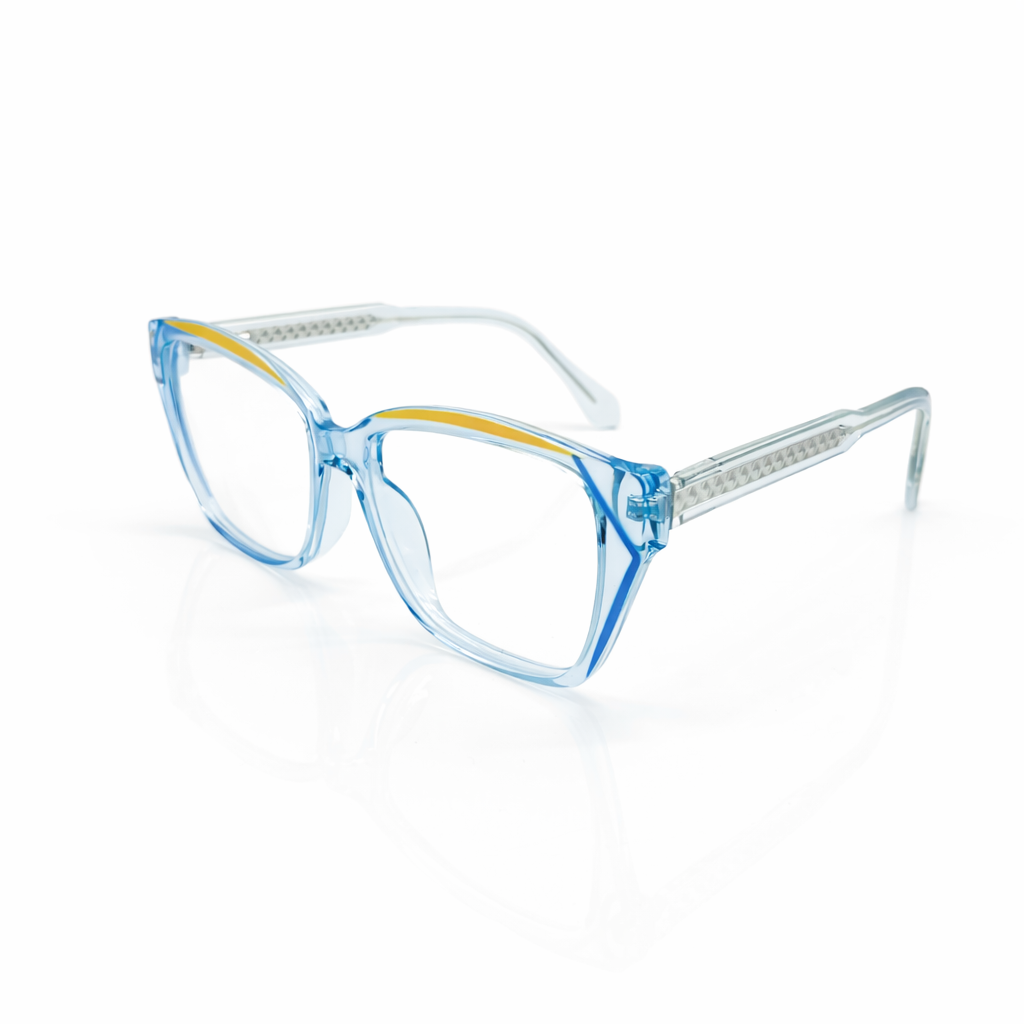 This design showcases a confident soft geometric square silhouette, featuring a bold brow line that gently curves into approachable, rounded corners. The defining characteristic is its stunning two-tone gradient finish: the frame begins in a deep, commanding azure navy at the top and dissolves seamlessly into a crystal clear bottom. This "fade" effect visually lifts the face, emphasizing the eyes while keeping the overall look airy and unobtrusive.