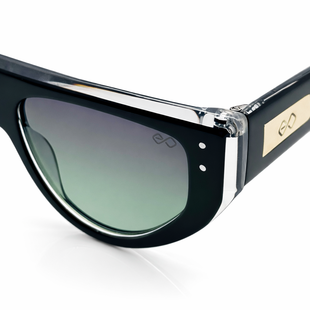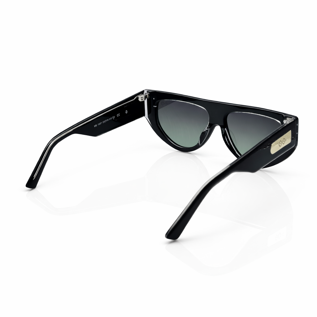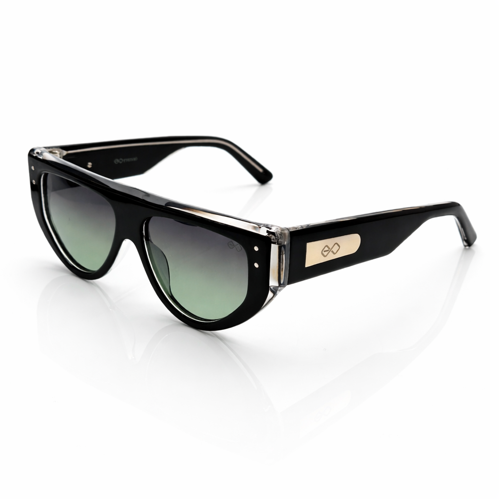The sleek black front contrasts beautifully with the transparent upper frame, creating a layered design that feels both futuristic and refined. Gradient lenses enhance the premium appeal while providing a smooth visual transition that elevates the overall look.