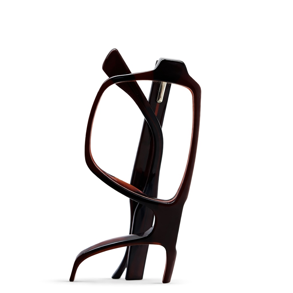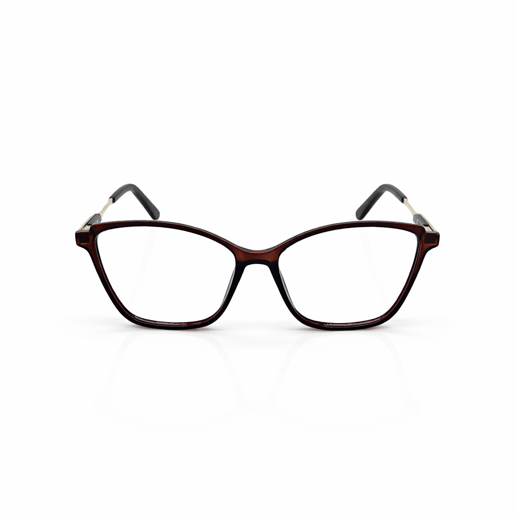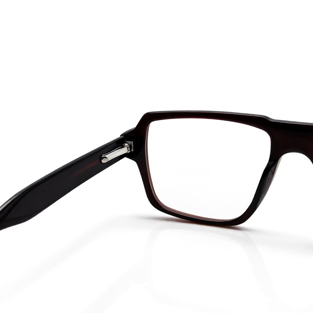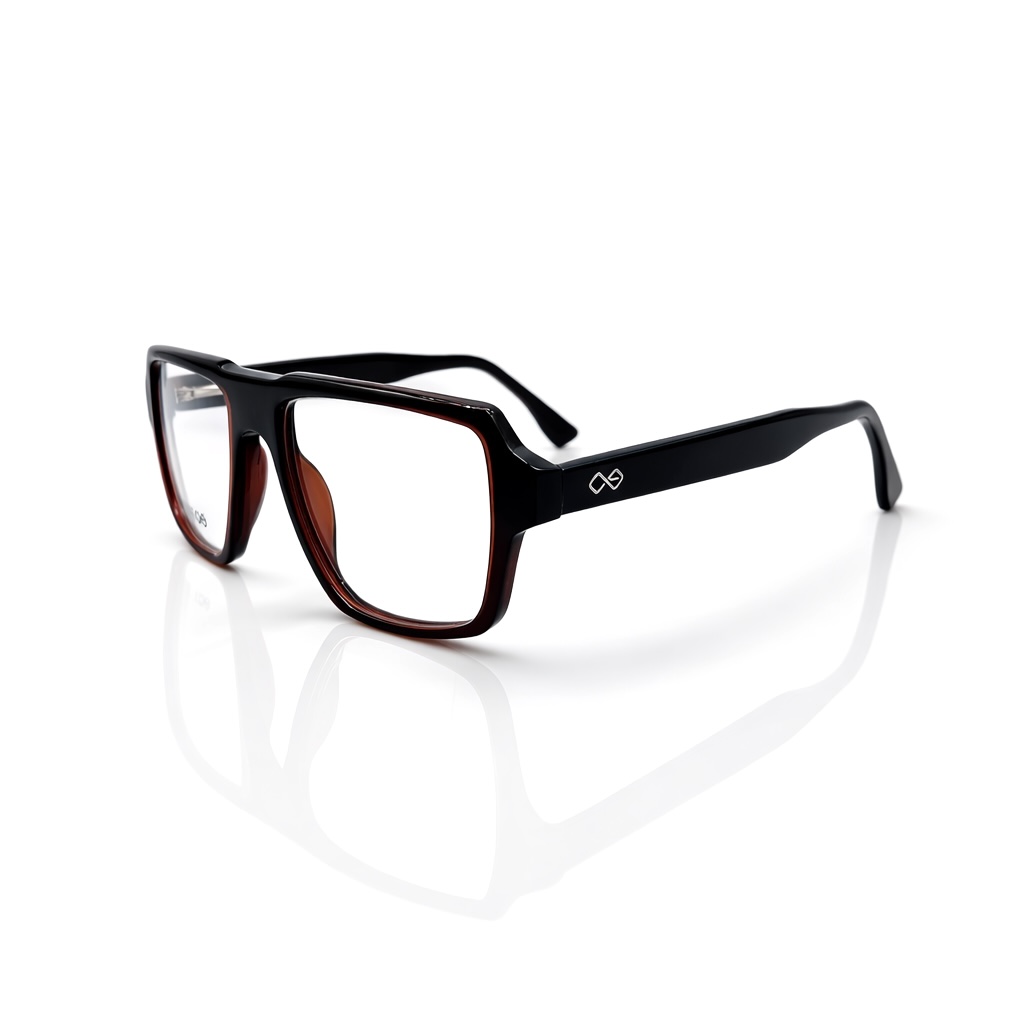 This model comes in a two-tone colour combination of classic black on the outer frame and deep burgundy / wine red on the inner rim, creating a subtle contrast that adds depth and character to the design. The glossy finish enhances the premium appearance while keeping the frame versatile for both professional and casual wear.