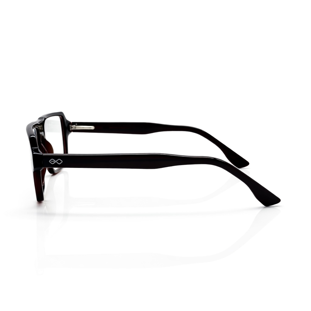 Built with lightweight yet durable acetate material, the Raven ensures long-lasting comfort for daily use. The temples are smooth and ergonomic, while the sturdy metal hinge system adds flexibility and reliability. A minimal Eyedoo infinity logo on the temples completes the design with a refined brand signature.