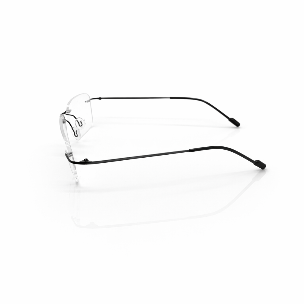 Features ultra-slim, high-flex titanium temples for a secure fit that feels weightless, even during 12-hour workdays. The three-piece compression mount eliminates the visual distraction of a traditional rim, providing a true panoramic field of vision.