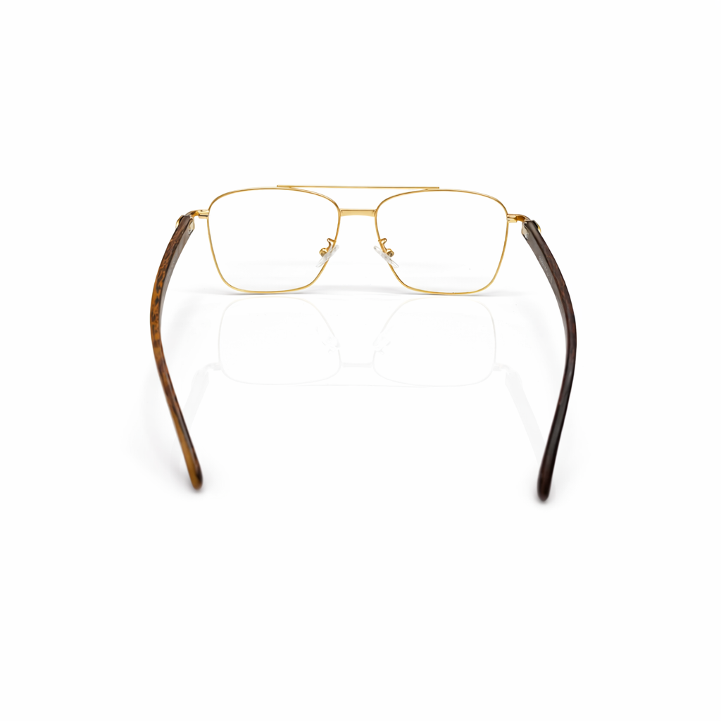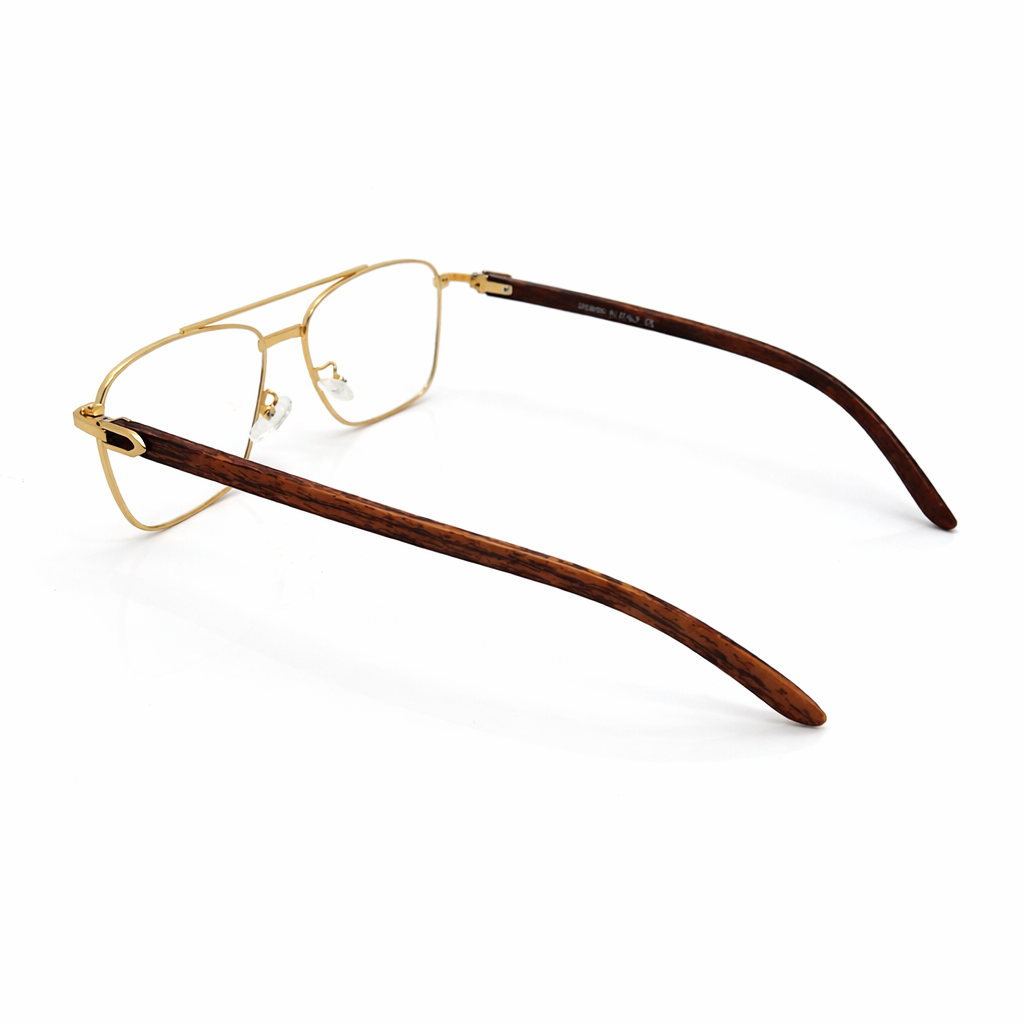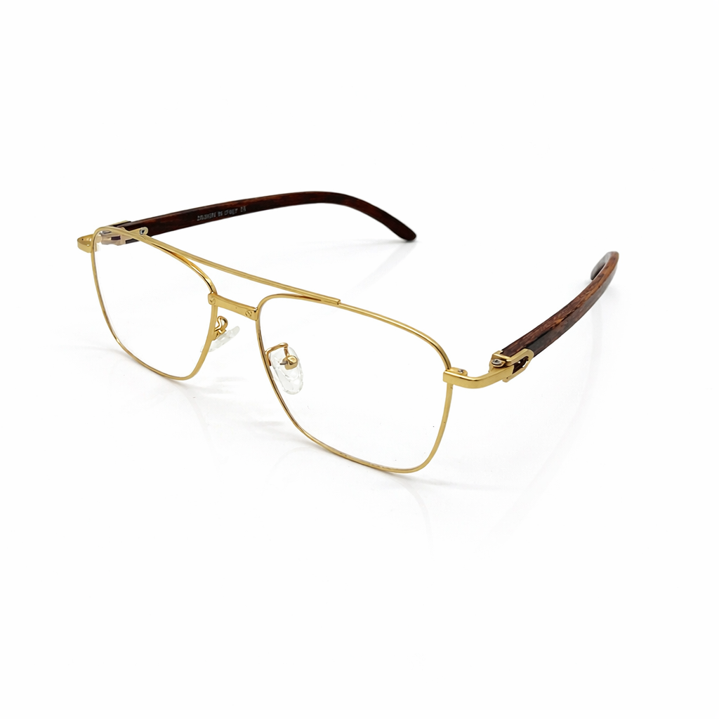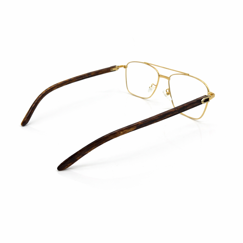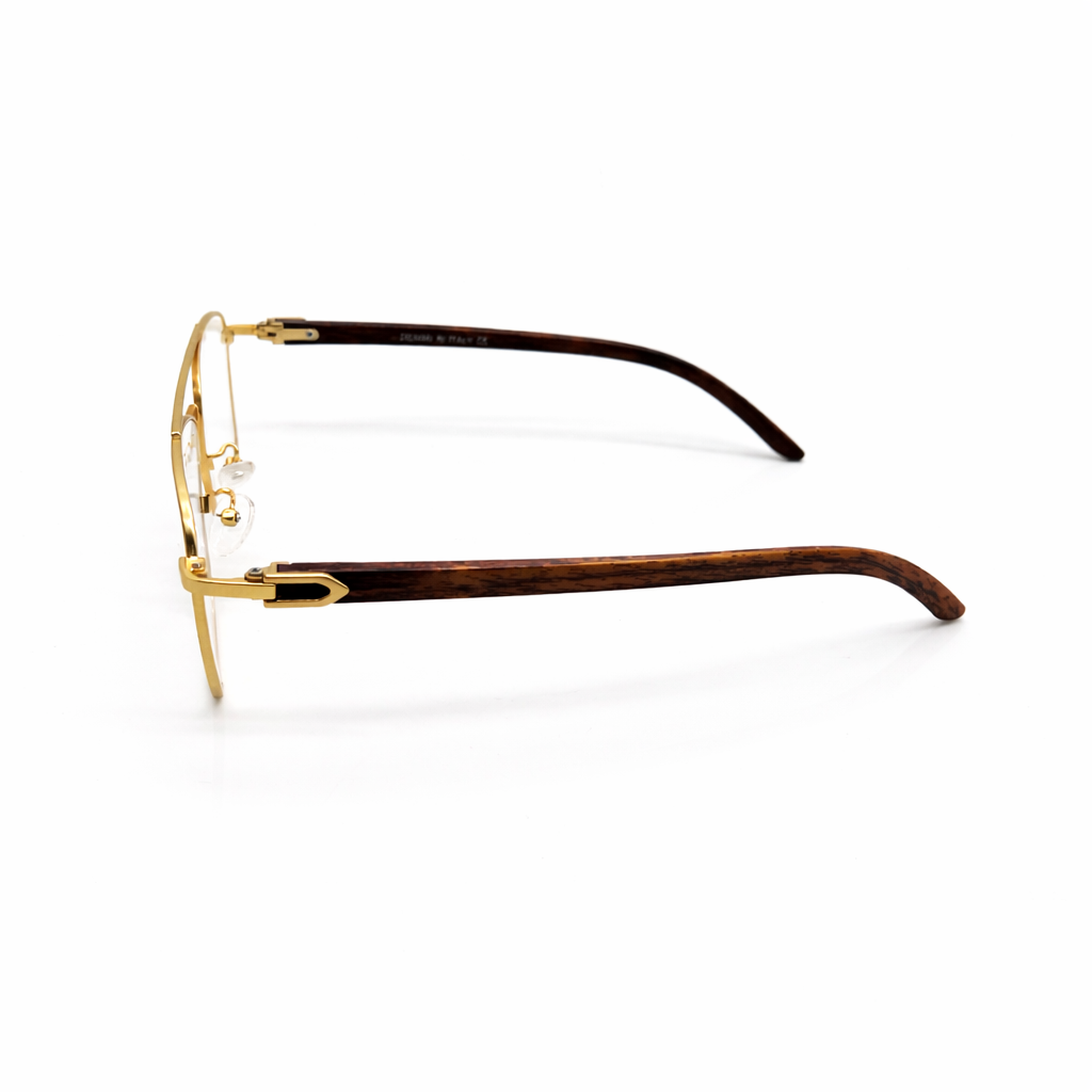 Precision-engineered with a high-polish gold finish, featuring a signature reinforced double bridge that adds a bold, architectural dimension to the face. Outfitted with rich ebony-wood finished temples, providing a substantial feel and a sophisticated textural contrast to the brilliant gold frame.