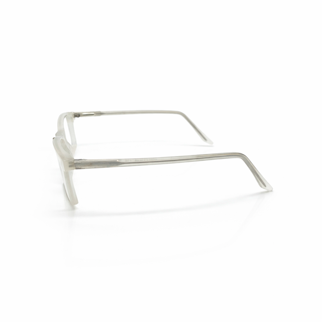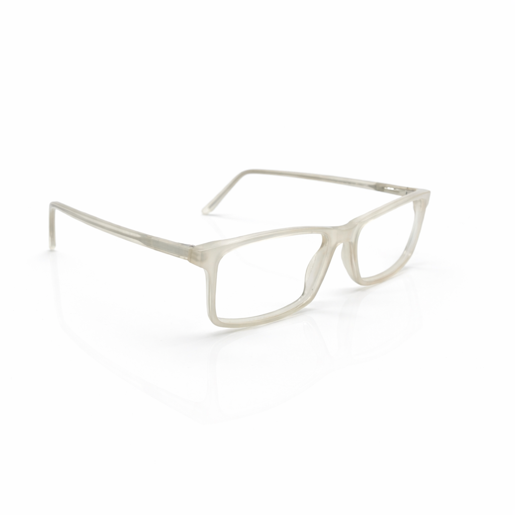 This frame features a commanding flat-top geometric silhouette, combining a straight architectural brow line with deep, squared-off lenses for a look that exudes confidence. The defining characteristic is the matte translucent acetate finish in a smoky grey. This "Ice Mist" texture diffuses light, creating a soft, frosted appearance that feels premium and smooth to the touch.