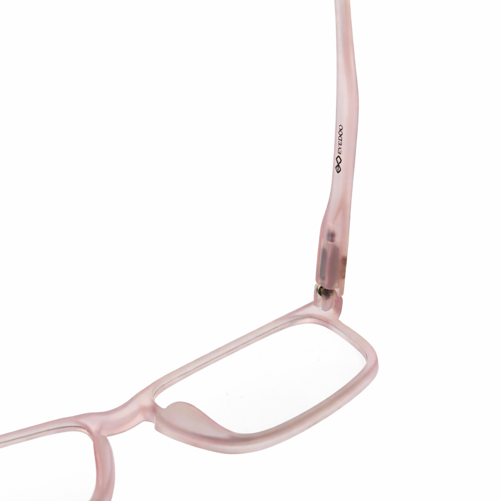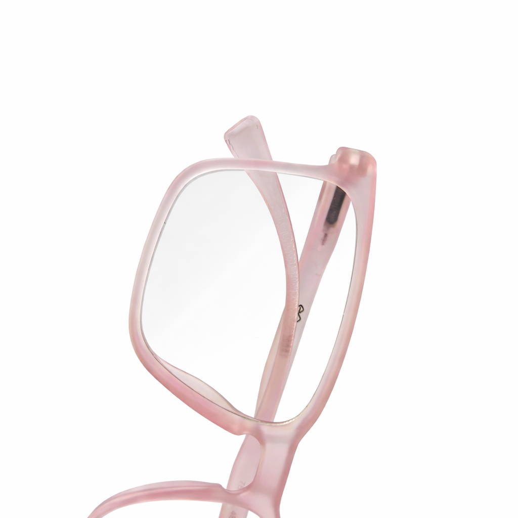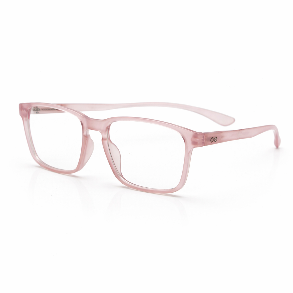 This frame features a translucent soft pink colour, giving it a subtle, stylish, and contemporary appearance. The transparent finish adds a light and elegant touch, making it suitable for both casual and professional wear.