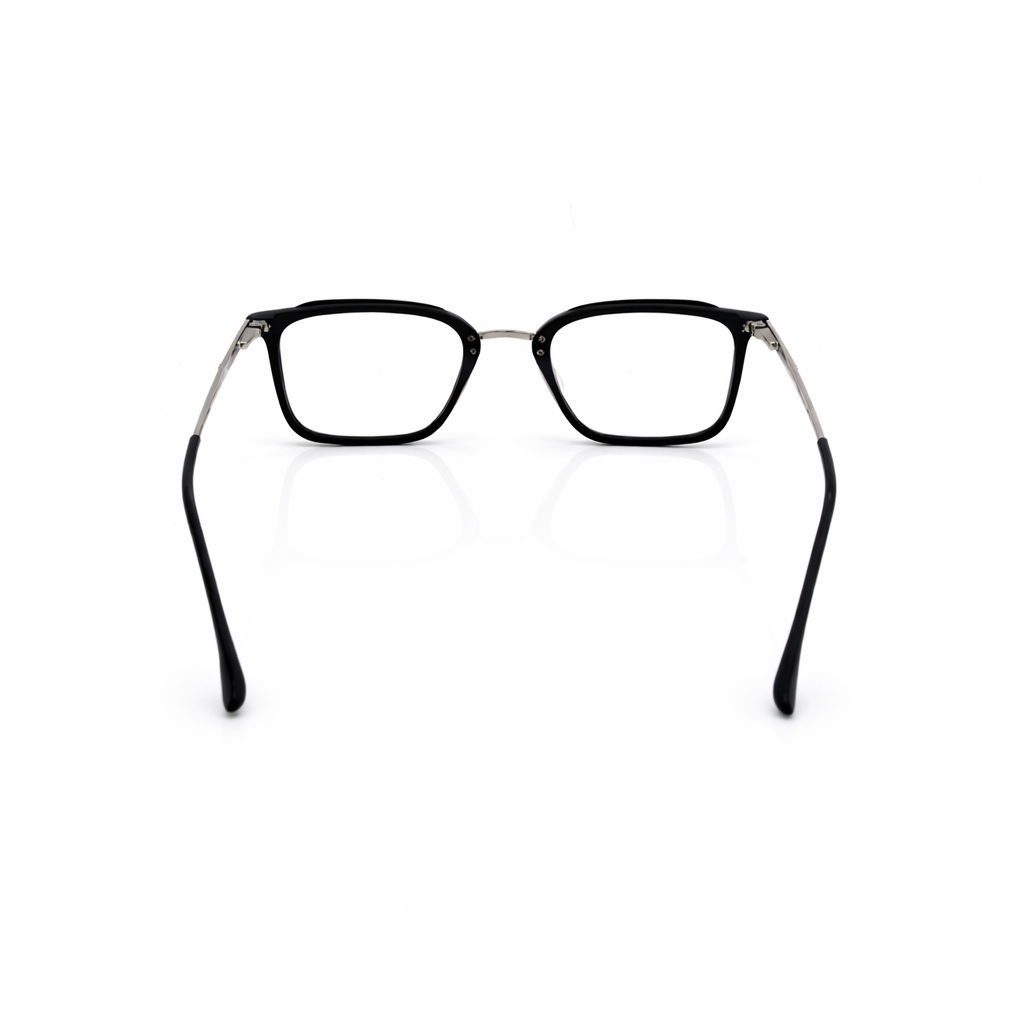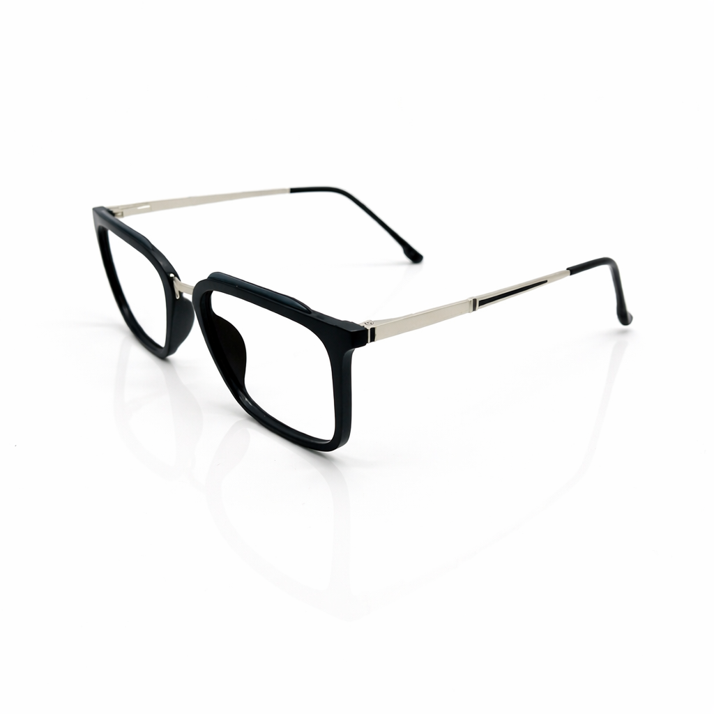 Redefine your everyday look with a frame designed for the detail-oriented. These premium square-frame glasses feature a bold matte-black acetate front contrasted by ultra-slim, architectural silver temples. The subtle brow-line detailing adds a layer of depth and character, making them as much a piece of art as they are a functional necessity.