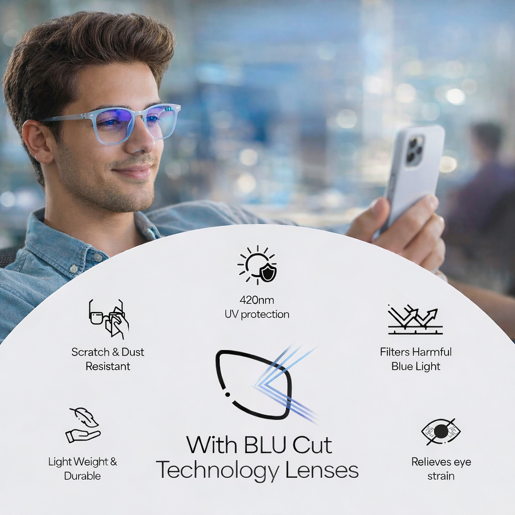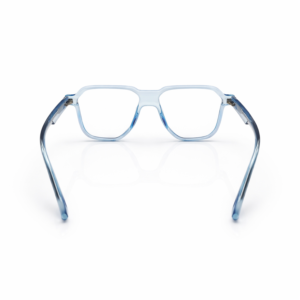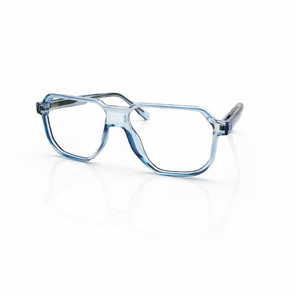 The design is defined by its confident flat-top geometric silhouette, merging a strong architectural brow line with deep, squared-off lenses. The frame is sculpted from premium matte translucent acetate in a cool, smoky grey. This "Glacier Mist" finish diffuses light like fog over ice, creating a soft, sophisticated texture that is smooth to the touch and resists fingerprints.