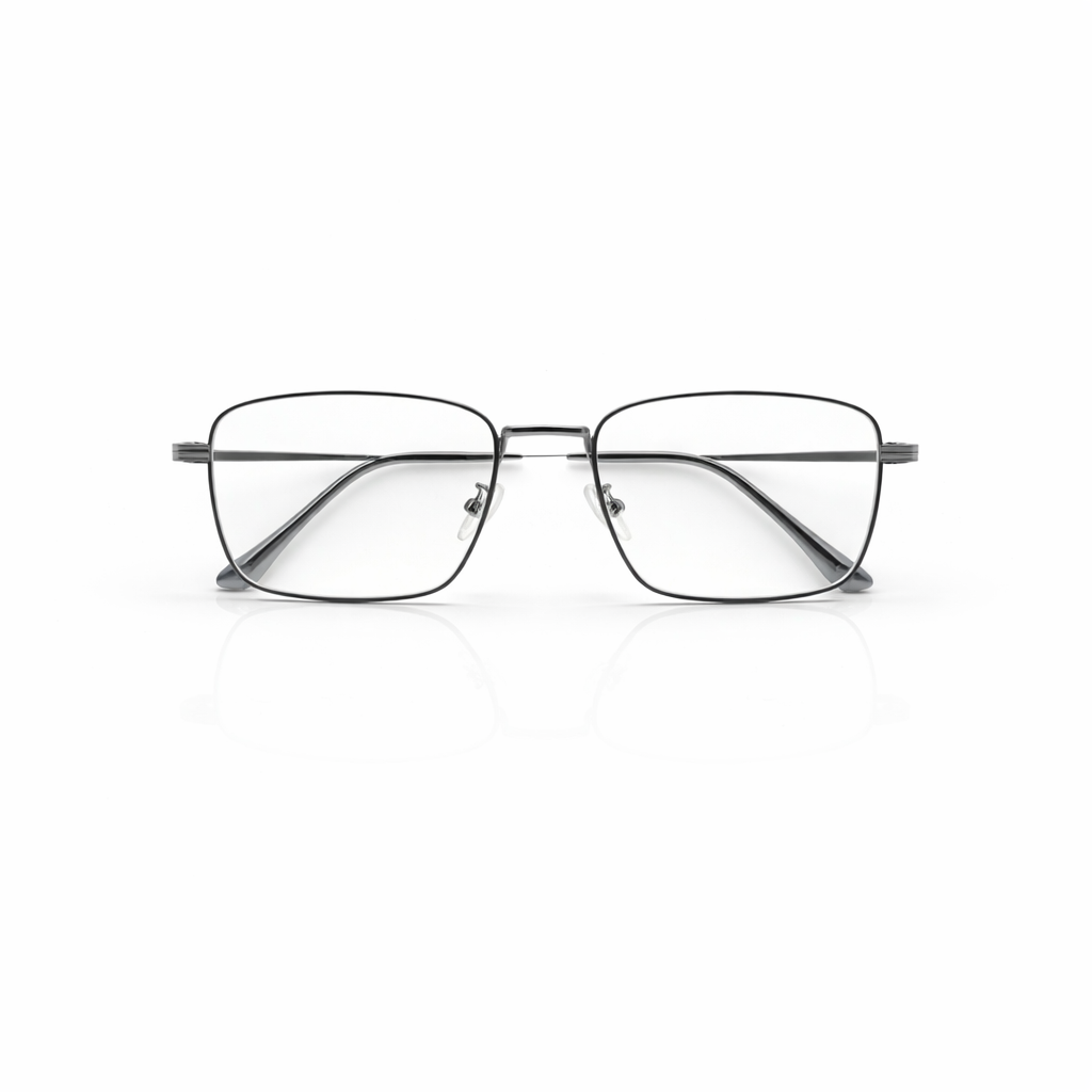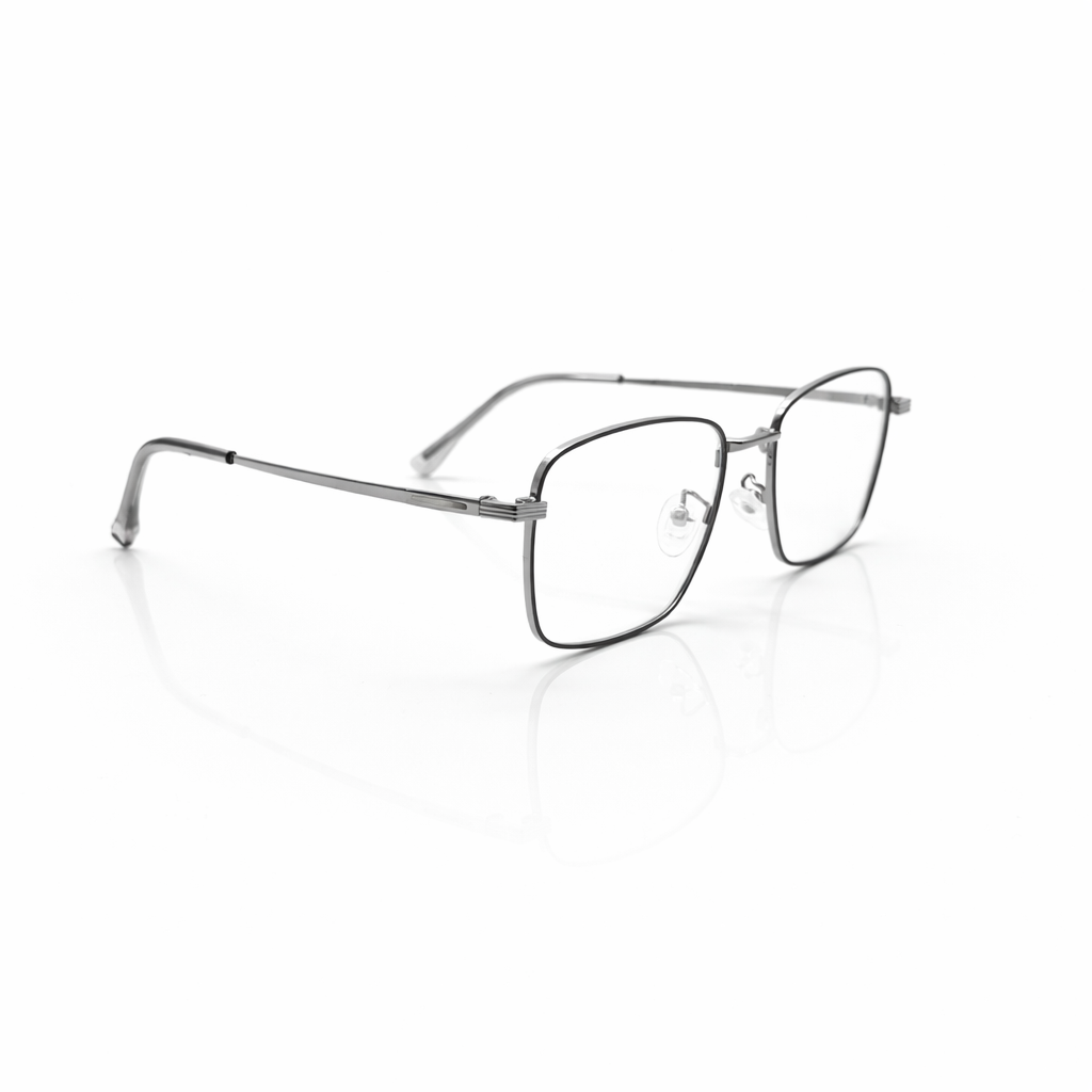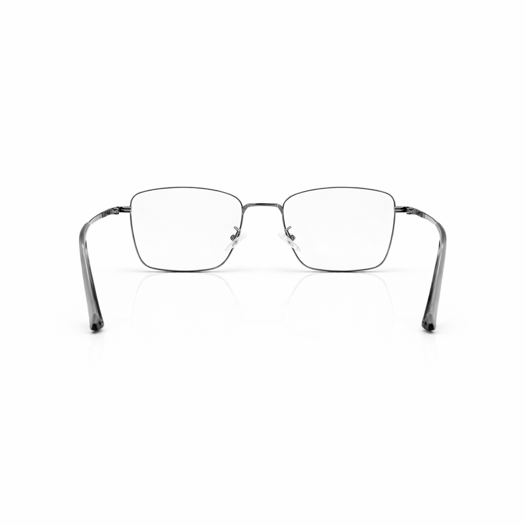 This frame is defined by its striking flat-top geometric silhouette, which combines a strong, straight brow line with deep, squared-off lenses. Crafted from premium matte translucent acetate, the frame features a "frosted" smoke-grey finish. This semi-transparent aesthetic is not just stylish but reveals the intricate metal core wire running through the temples, adding an industrial, high-quality touch to the design.